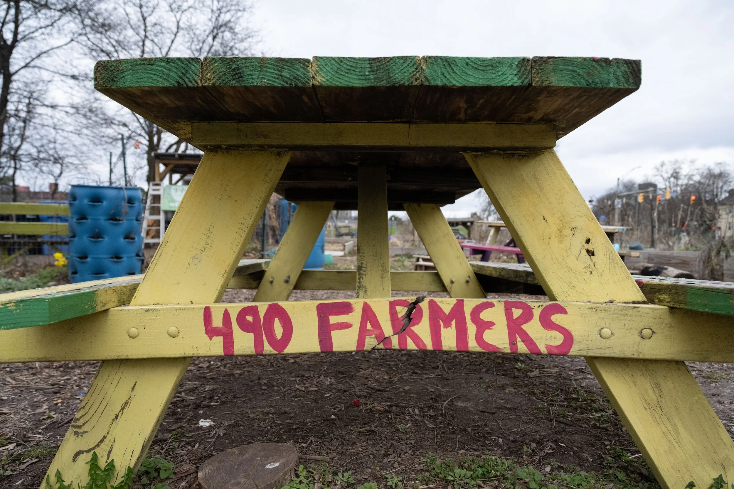 Before 490 Farm, the empty plot was an encampment for nearby unhoused people. “Along the fence line is a ridge, and below that was kind of like the hiding hole for homeless people for a long time, longer than the garden has been here” says Timothy.