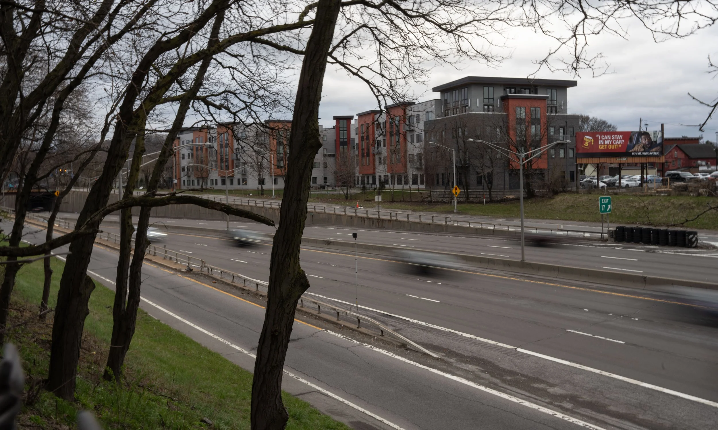 Across the fence from 490 Farm is I-490, photographed on Monday, April 15, 2024, in Rochester, N.Y.