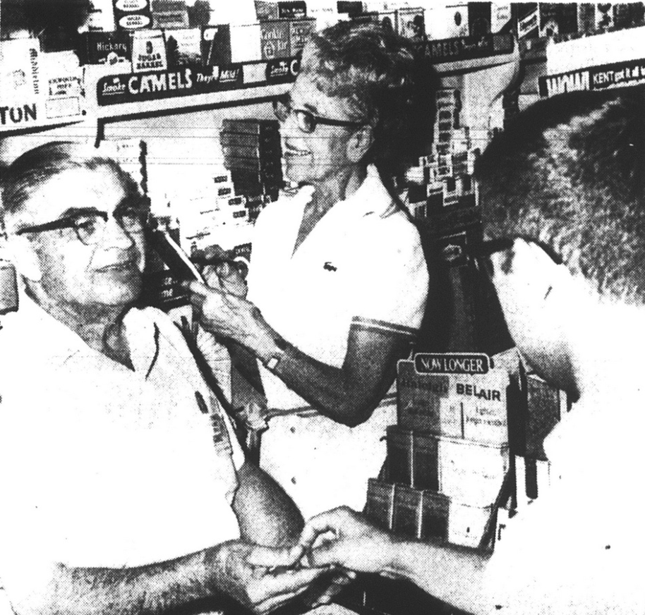 Archival photograph of Sam and Josephine Battaglia at B&B Cigar Store on Main Street, Niagara Falls, NY provided by Buffalo Stories.
